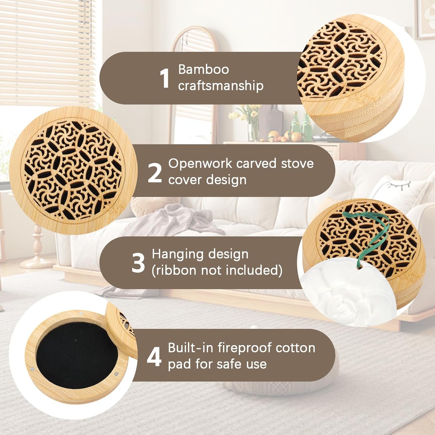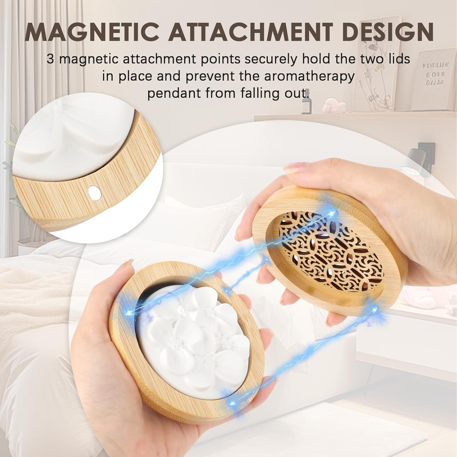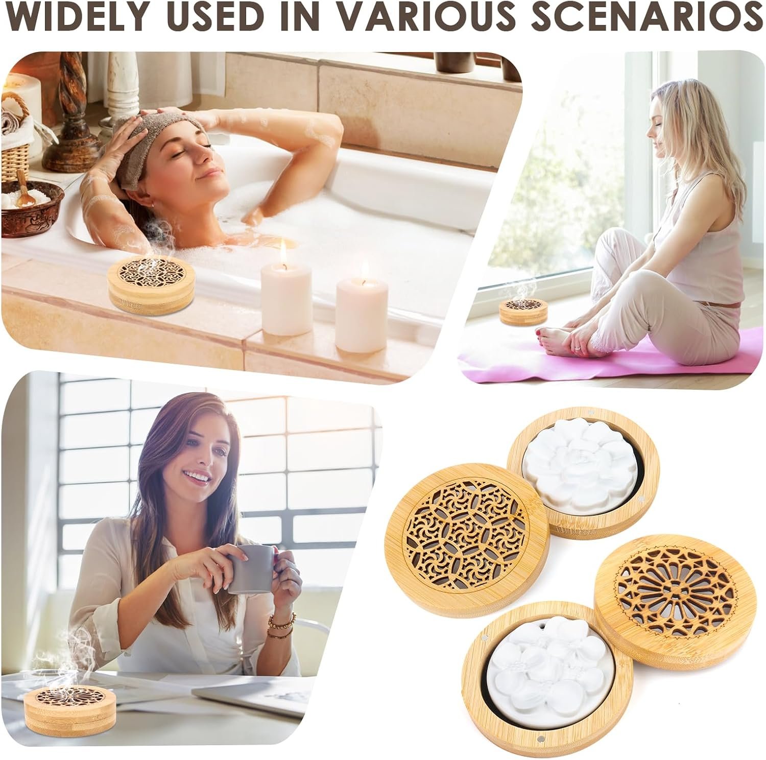 - Aromaterapia natural sin electricidad ni fuego: las piedras de fragancia están hechas de yeso de alta calidad con delicados motivos florales y difunden los aceites esenciales de forma segura y uniforme. Ideales para el dormitorio, la oficina o el coche, sin necesidad de electricidad ni llamas abiertas.