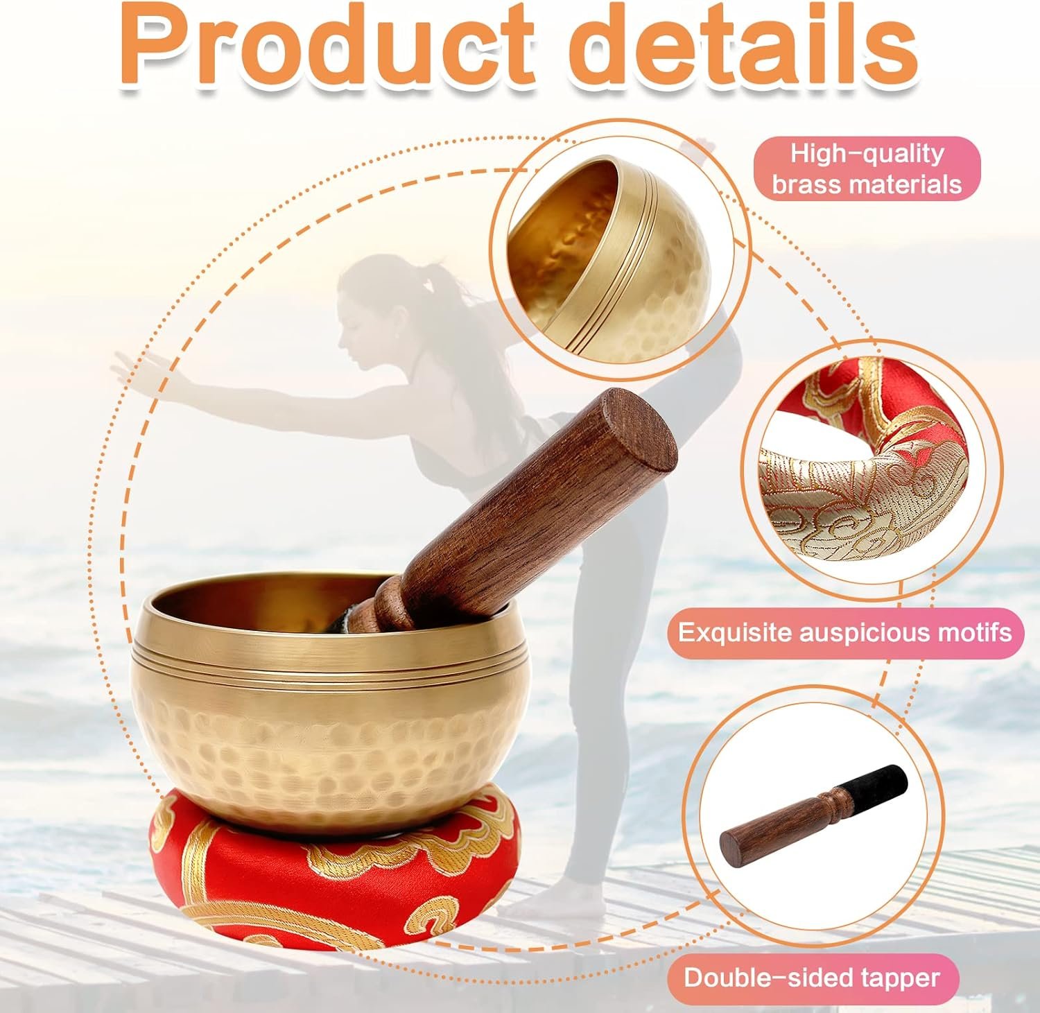 - Versátil: el sonido del cuenco tibetano martillado a mano tiene un efecto calmante y es ideal para la práctica de yoga, meditación, relajación o budismo, ayudando al usuario a aliviar el estrés, la ansiedad y la depresión, además de promover la meditación y mejorar el sueño.