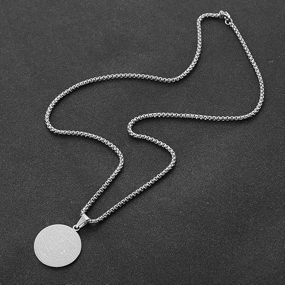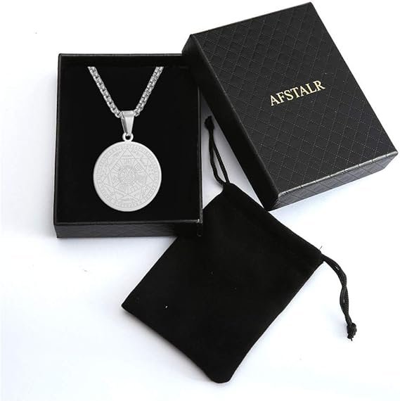 - AFSTALR Acero inoxidable premium. Collar talismán de pentagrama oculto de Salomón fabricado en acero inoxidable de alta calidad. Viene con el collar de acero 316 L correspondiente. Hipoalergénico, no se oxida, absolutamente saludable y confortable para la piel. Irrompible, indeformable. Requiere una atención mínima para su mantenimiento.