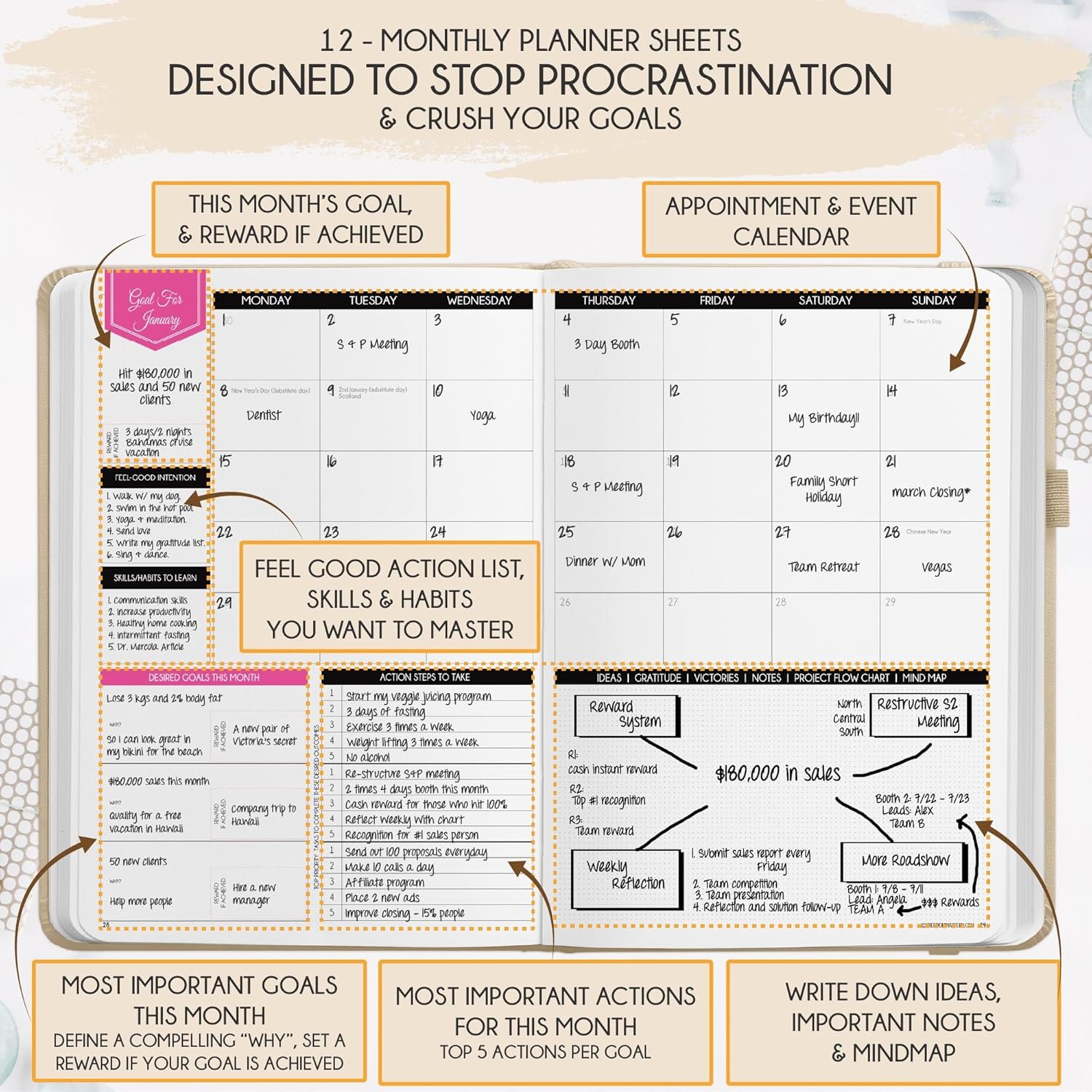 - CONSIGUE TUS METAS UTILIZANDO LA LEY DE LA ATRACCIÓN – Aprende a fijar grandes metas, ser feliz y administrar bien tu tiempo, y sigue los mismos métodos que utilizan los millonarios de todo el mundo para fijar metas y alcanzarlas. Esta agenda mensual sin fecha, agenda de vida, agenda por horas, agenda anual, agenda de trabajo, agenda de horarios o agenda de citas. Es una agenda perfecta para mujeres y hombres.