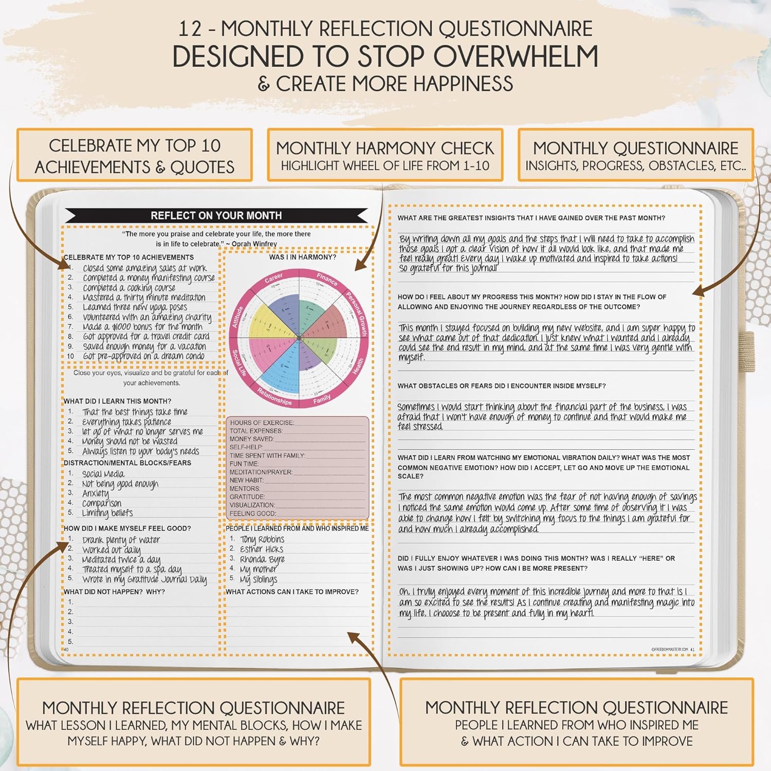 - REDUCE LA SOBRECARGA, EL ESTRÉS Y ACLARA LA PROCRASTINACIÓN: sigue un sistema único de 8 pasos que te ayudará a recuperar la armonía, la claridad y la paz en tu vida mientras logras tus objetivos. Esta agenda es perfecta para regalar en cumpleaños, el día de la madre, aniversarios y Navidad.