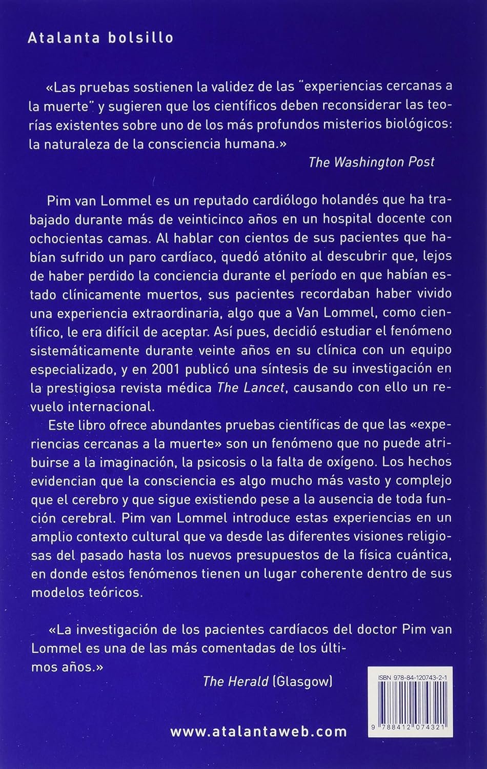 «Las pruebas sostienen la validez de las experiencias cercanas a la muerte y sugieren que los científicos deben reconsiderar las teo¡rías existentes sobre uno de los más profundos misterios biológicos: la naturaleza de la consciencia humana.» The Washington Post Pim van Lommel es un reputado cardiólogo holandés que ha trabajado durante más de veinticinco años en un hospital docente con ochocientas camas. Al hablar con cientos de sus pacientes que habían sufrido un paro cardíaco, quedó atónito al descubrir que, lejos de haber perdido la conciencia durante el período en que habían estado clínicamente muertos, sus pacientes recordaban haber vivido una experiencia extraordinaria, algo que a Van Lommel como científico le era difícil de aceptar. Así pues, decidió estudiar el fenómeno sistemáticamente durante veinte años en su clínica con un equipo especializado y en 2001 publicó una síntesis de su investigación en la prestigiosa revista médica The Lancet, causando con ello un revuelo internacional. Este libro ofrece abundantes pruebas científicas de que las «experiencias cercanas a la muerte» son un fenómeno que no puede atribuirse a la imaginación, la psicosis o la falta de oxígeno. Los hechos evidencian que la conciencia es algo mucho más vasto y complejo que el cerebro y que sigue existiendo pese a la ausencia de toda función cerebral. Pim van Lommel introduce estas experiencias en un amplio contexto cultural que va desde las diferentes visiones religiosas del pasado hasta los nuevos presupuestos de la física cuántica, en donde estos fenómenos tienen un lugar coherente dentro de sus modelos teóricos. «La investigación de los pacientes cardíacos del doctor Pim van Lommel es una de los más comentados de los últimos años.». The Herald (Glasgow).