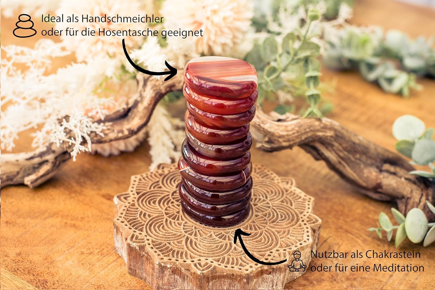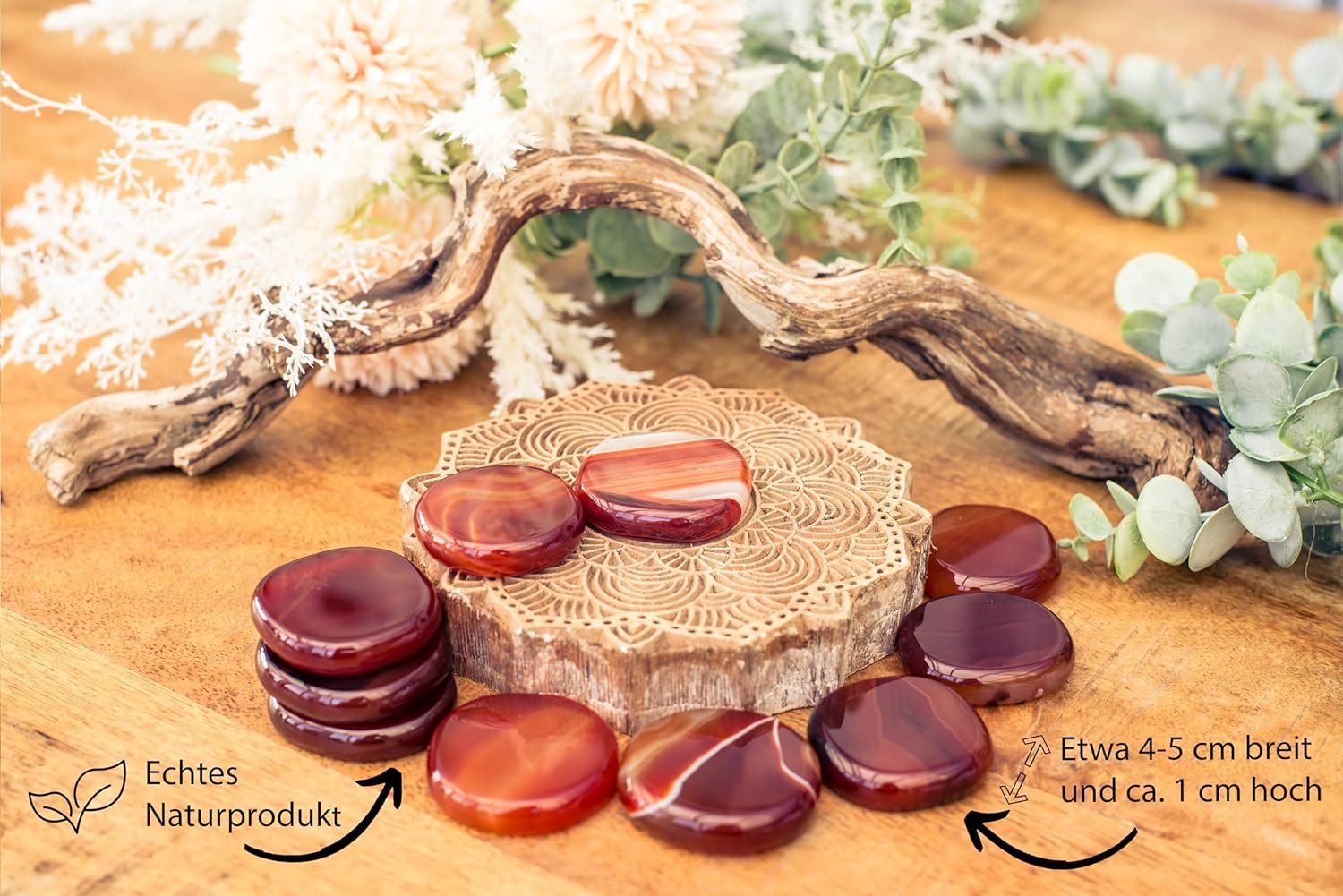 - PRODUCTO NATURAL REAL: cada piedra muestra matices y patrones únicos de color, lo que subraya la belleza natural y la autenticidad de la cornalina.