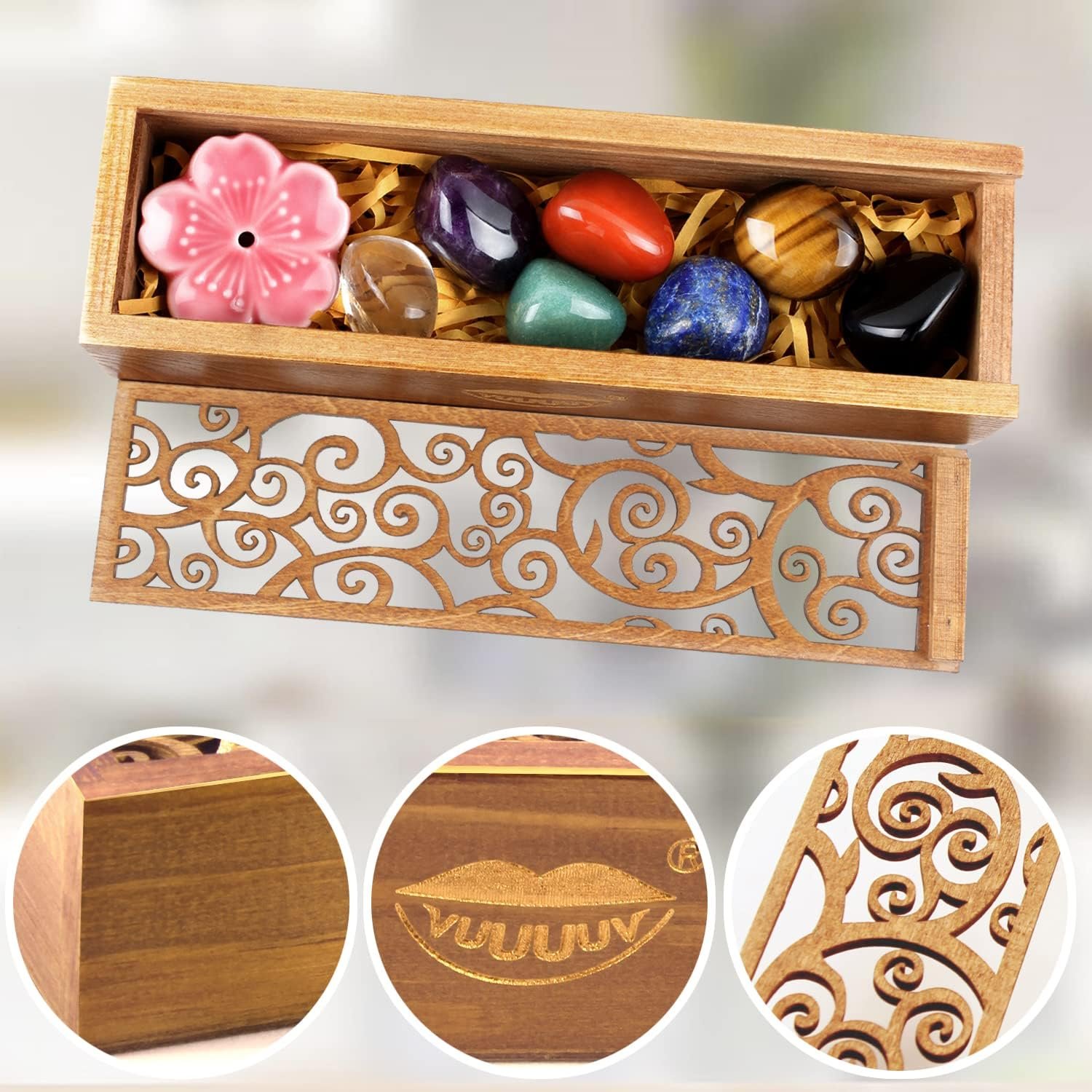 • El exquisito embalaje de madera tallado artes no solo puede proteger las piedras de chakras, sino que también arreglar las ocho piedras de chakra en secuencia, para crear una energía excepcional y crear un jardín de espíritu en tu habitación.
