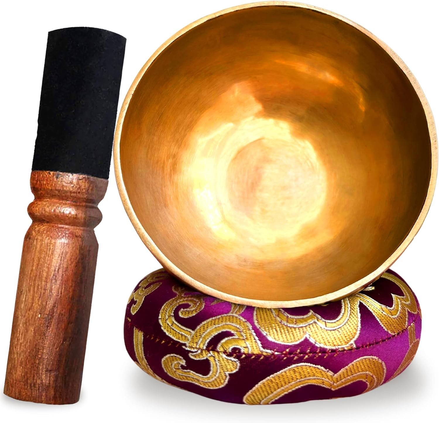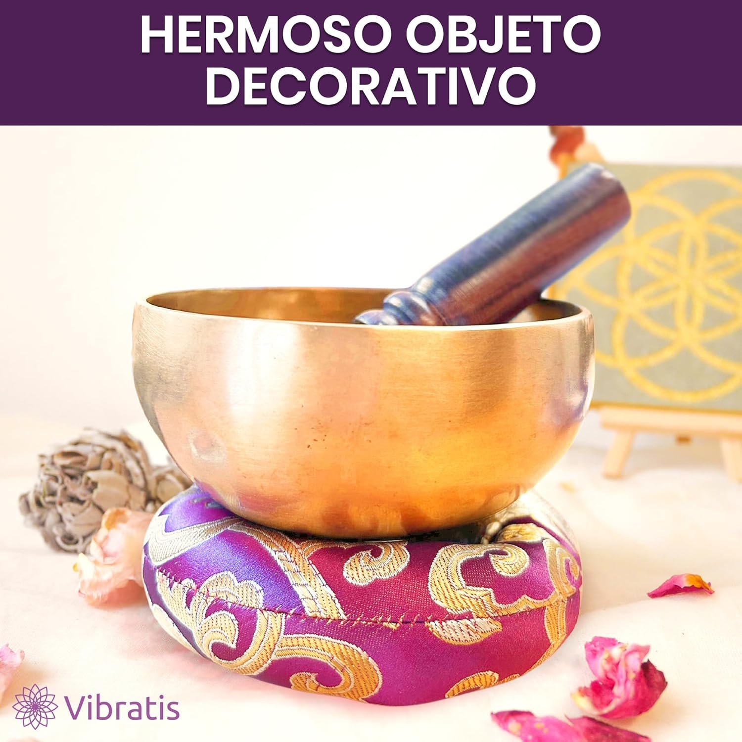 - Incluye: cuenco tibetano de 4,33 pulgadas (11 cm). Peso: 298 g. Mazo de madera con protección de gamuza. Cojín morado de seda bordado a mano. Caja violeta de papel tibetano (Lokta) hecha a mano.