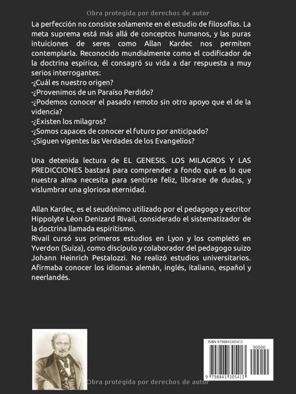 La perfección no consiste solamente en el estudio de filosofías. La meta suprema está más allá de conceptos humanos, y las puras intuiciones de seres como Allan Kardec nos permiten contemplarla. Reconocido mundialmente como el codificador de la doctrina espírita, él consagró su vida a dar respuesta a muy serios interrogantes: ¿Cuál es nuestro origen? .¿Provenimos de un Paraíso Perdido? .¿Podemos conocer el pasado remoto sin otro apoyo que el de la videncia? .¿Existen los milagros? .¿Somos capaces de conocer el futuro por anticipado? .¿Siguen vigentes las Verdades de los Evangelios?. Una detenida lectura de esta obra bastará para comprender a fondo qué es lo que nuestra alma necesita para sentirse feliz, librarse de dudas, y vislumbrar una gloriosa eternidad.