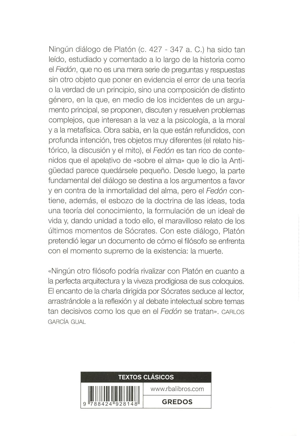 Ningún diálogo de Platón (c. 427 – 347 a. C.) ha sido tan leído, estudiado y comentado a lo largo de la historia como Fedón, que no es una mera serie de preguntas y respuestas sin otro objeto que poner en evidencia el error de una teoría o la verdad de un principio, sino una composición de distinto género, en la que, en medio de los incidentes de un argumento principal, se proponen, discuten y resuelven problemas complejos, que interesan a la vez a la psicología, a la moral y a la metafísica. Obra sabia, en la que están refundidos, con profunda intención, tres objetos muy diferentes (el relato histórico, la discusión y el mito), Fedón es tan rico de contenidos, que el apelativo de sobre el alma que le dio la Antigüedad parece quedársele pequeño.