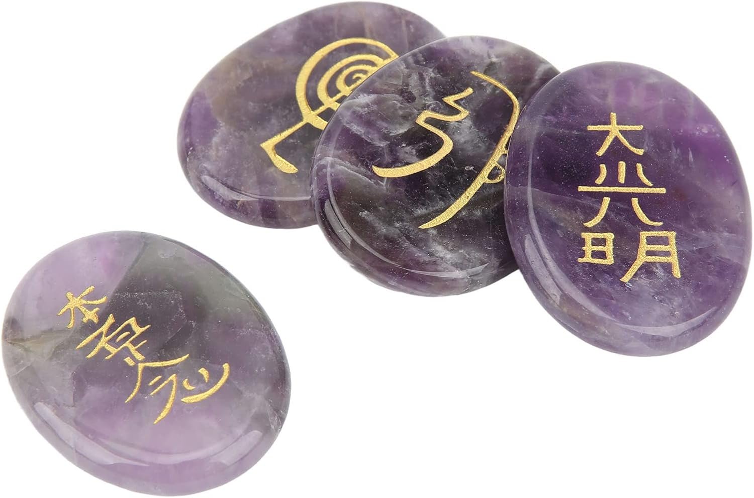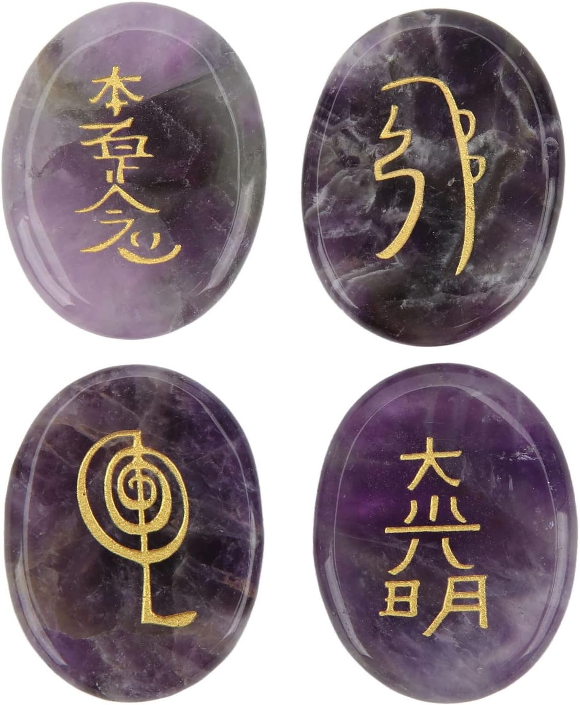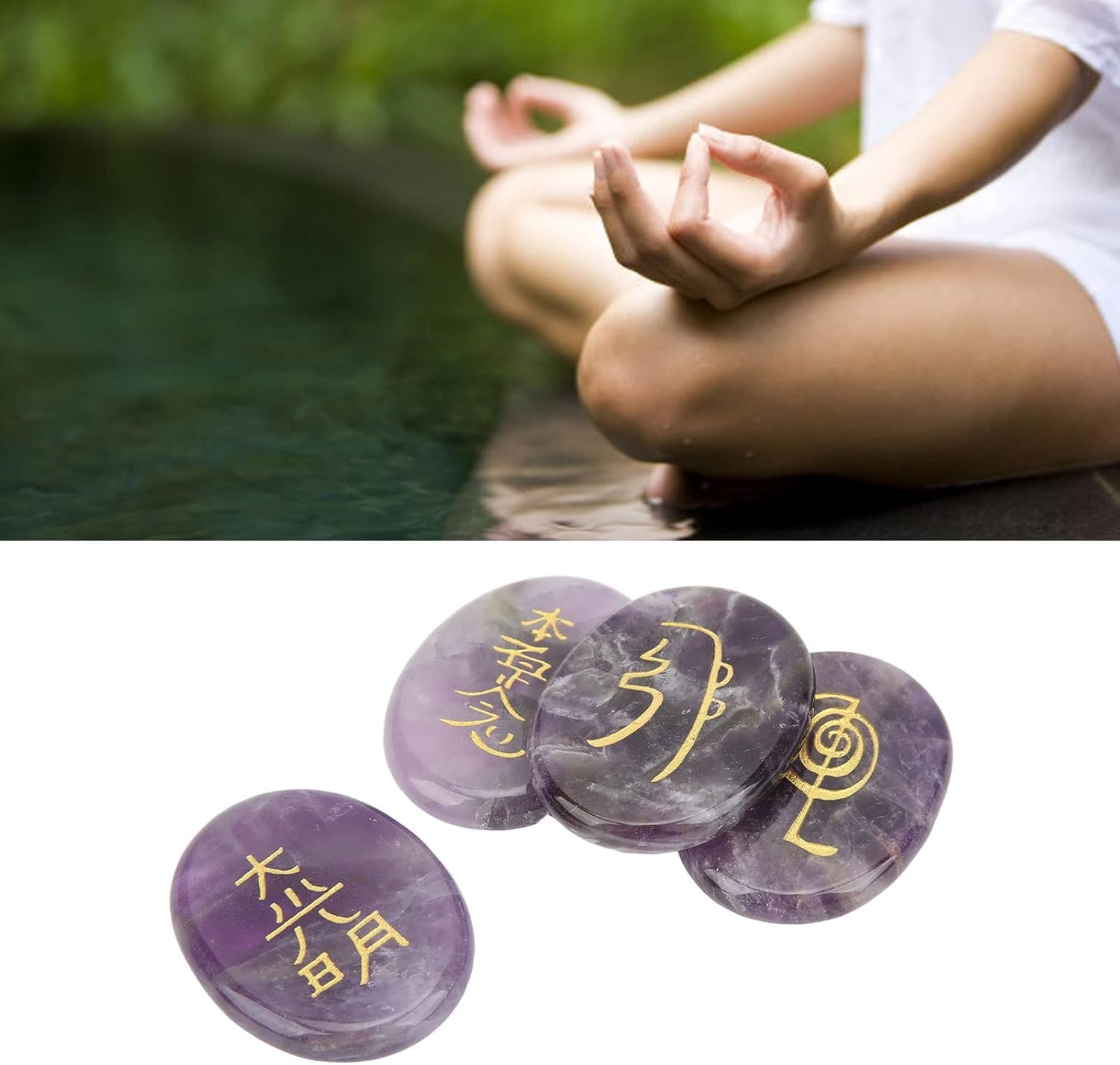 Juego de 4 cristales curativos de Reiki naturales y para meditación, con los símbolos de Reiki grabados.