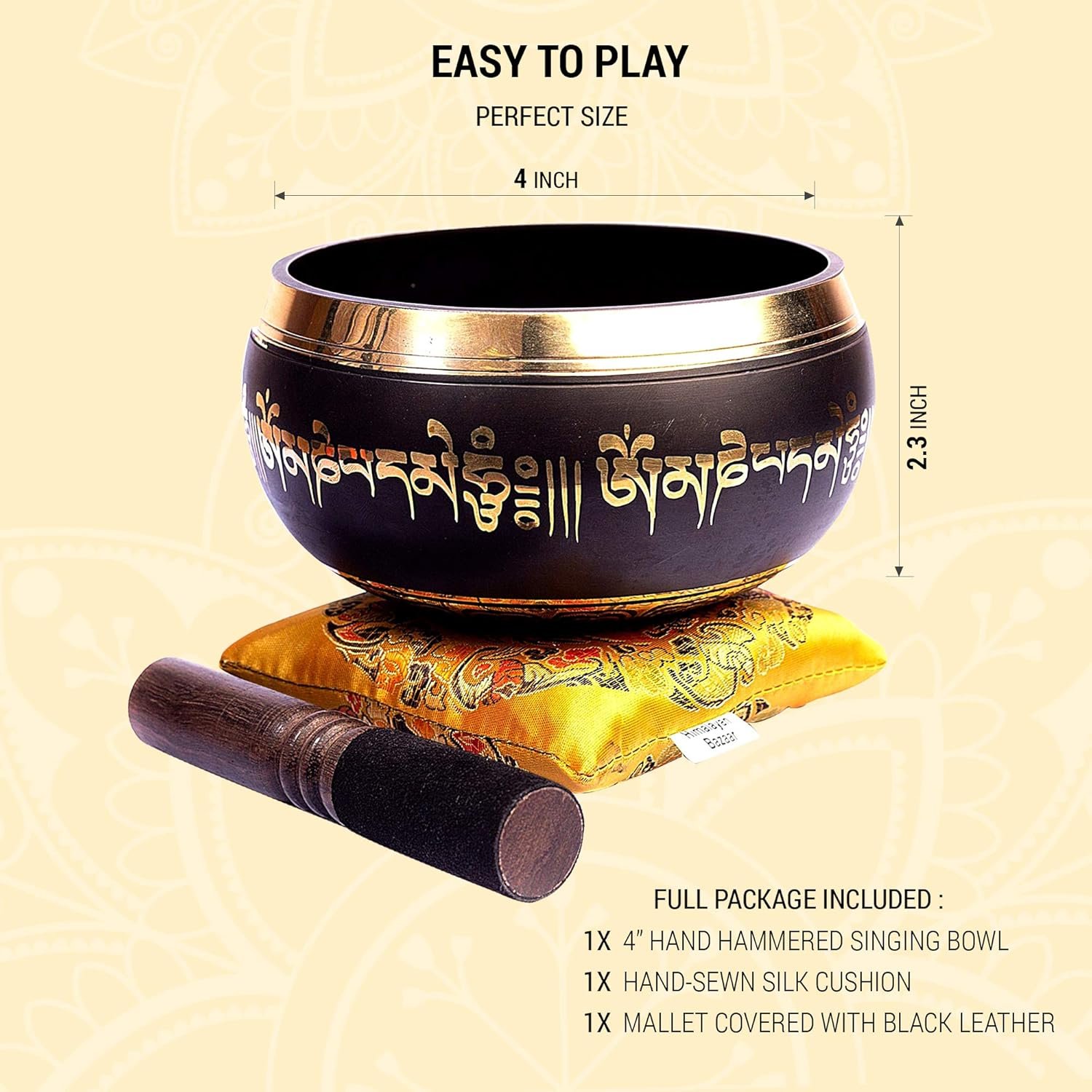 • El paquete completo incluye: 1 cuenco cantador martillado a mano de 10 cm, 1 cojín de seda cosido a mano, 1 mazo cubierto con cuero negro. Un juego completo de cuencos tibetanos para meditación y yoga a un precio práctico. Este cuenco cantador crea un ambiente perfecto para una meditación profunda, el pensamiento creativo y los mensajes intuitivos.