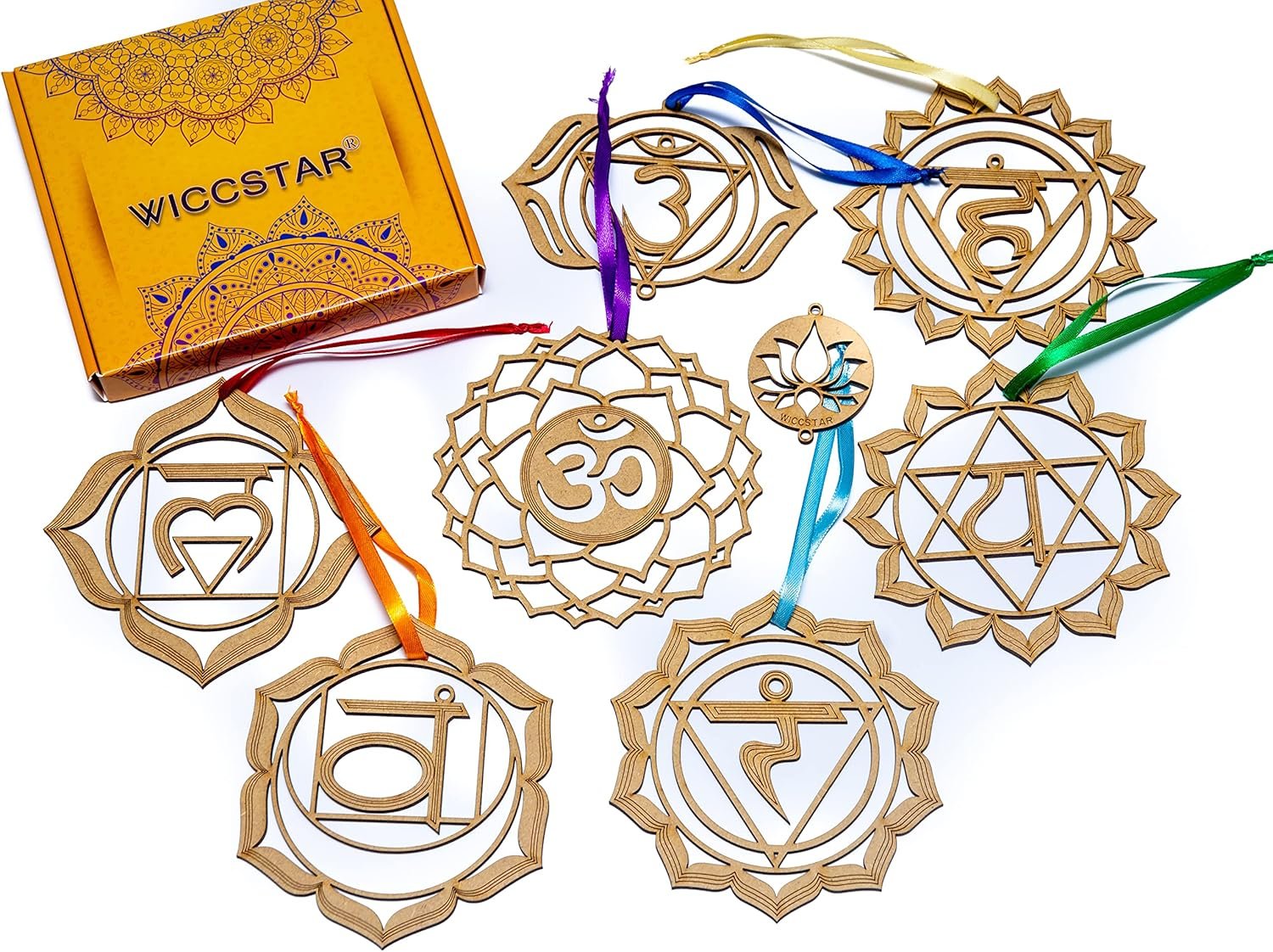 - Cada decoración de signo de chakra está representada por un color y símbolo específicos, lo que hace que nuestros colgantes de pared sean una gran ayuda visual para meditación, prácticas espirituales y de atención plena.