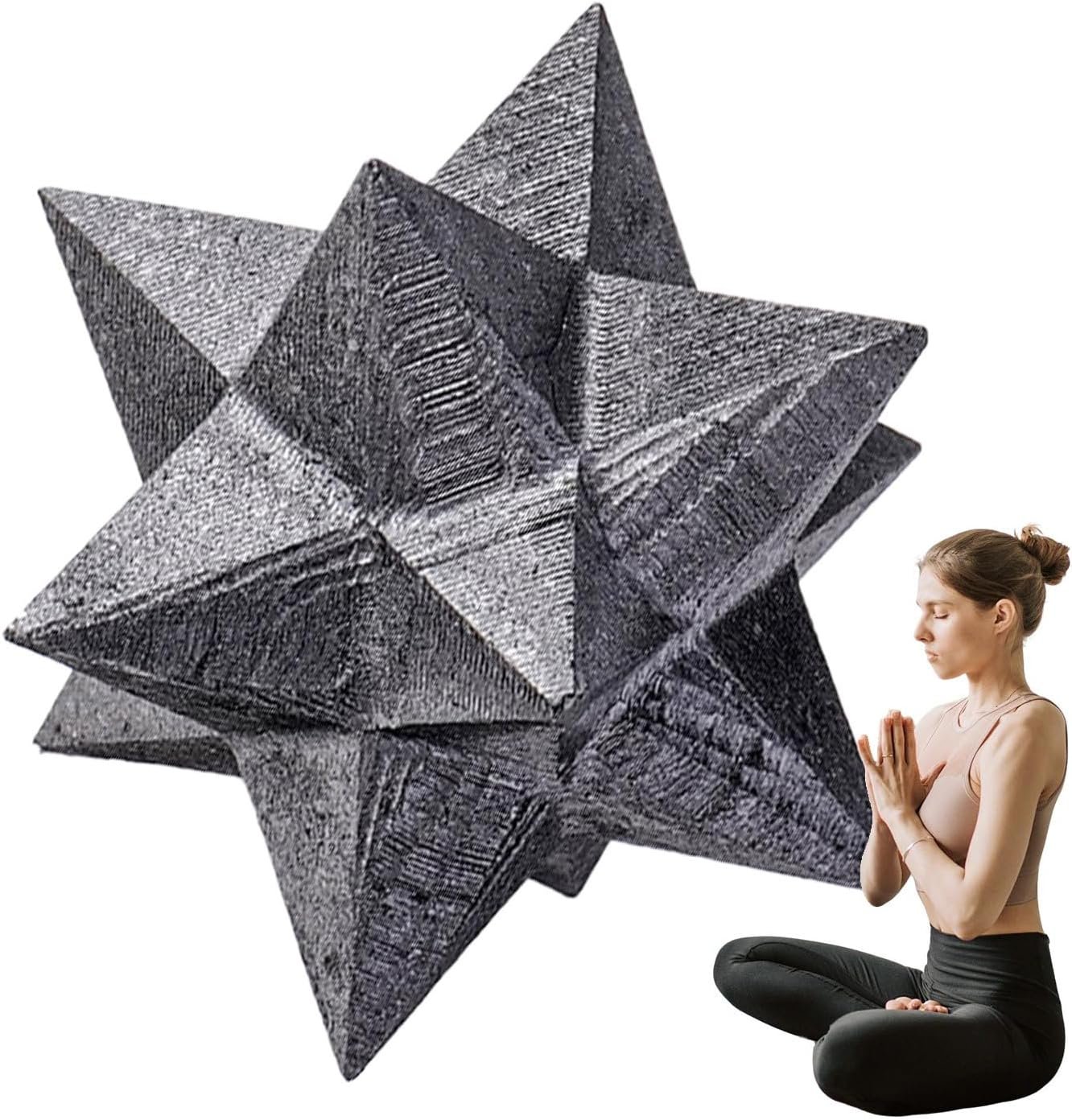 - Merkaba de shungita: con la estructura de hexagrama 3D Merkaba, fomenta la alineación con una conciencia amplificando prácticas espirituales a través de la geometría sagrada en una elegante y significativa ideal para quienes buscan mejorar su bienestar interior y conectar con energías es en su espacio personal gracias a su diseño único y funcionalidad espiritual
