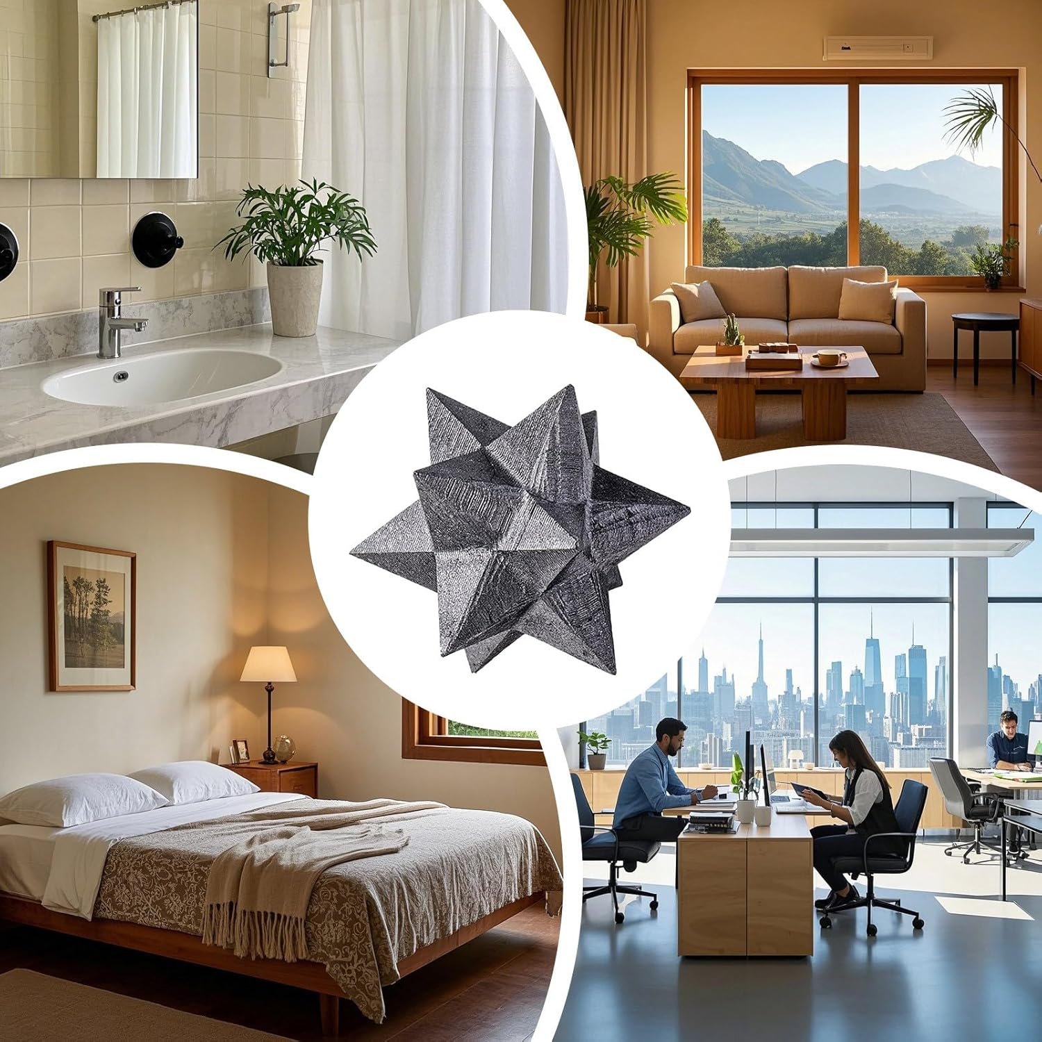 - Neutralizador de Energía Negativa: equilibra la purificación energética con su capacidad para actuar como una pieza decorativa serena y elegante sin esfuerzo. Su presencia en el hogar no mejora la decoración sino también el flujo de energía , creando un ambiente más armonioso y acogedor para momentos de calma y reflexión