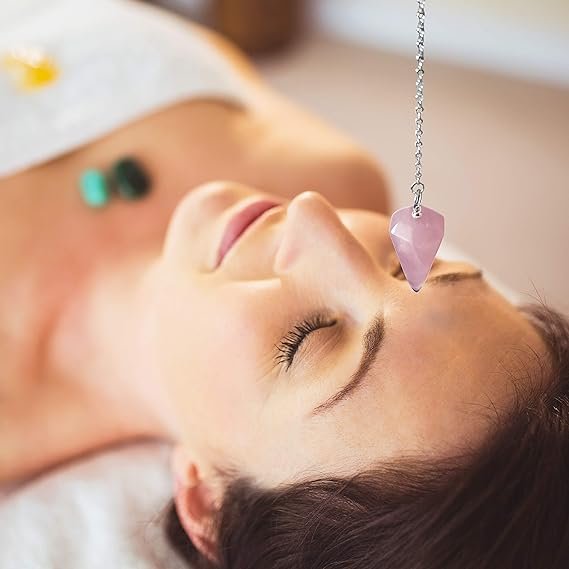 - Péndulo de piedras preciosas de cristal de cuarzo rosa. Una gran herramienta para adivinaciones, dowsings y comunicación con el mundo espiritual.