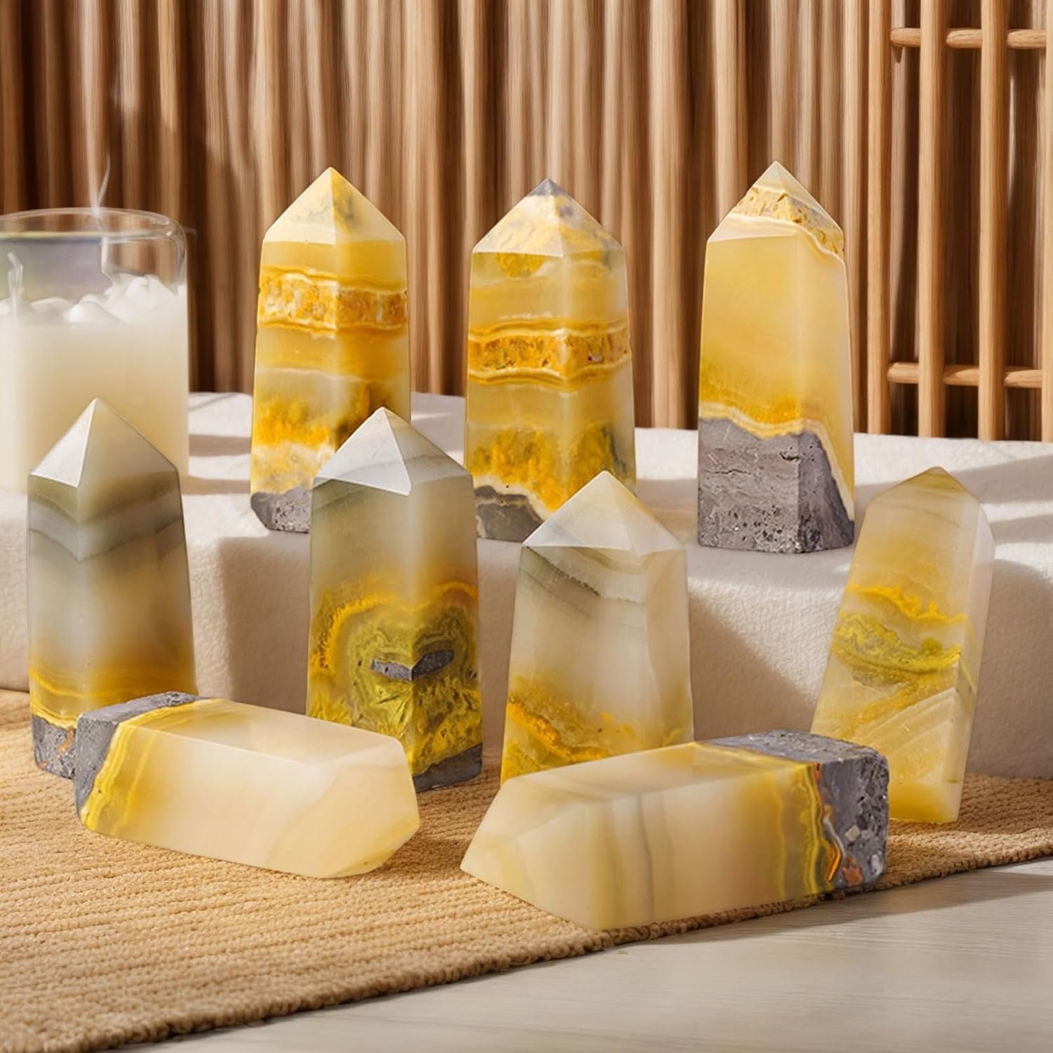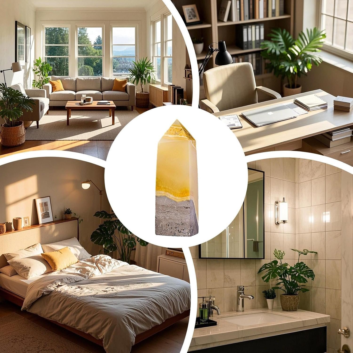 • Piedra de citrino: levanta tu energía de trabajo con esta piedra citrina, conocida por aliviar el estrés y agudizar la concentración. Sus efectos armonizadores fomentan la claridad mental y la paz, fomentando un entorno propicio para una productividad sostenida