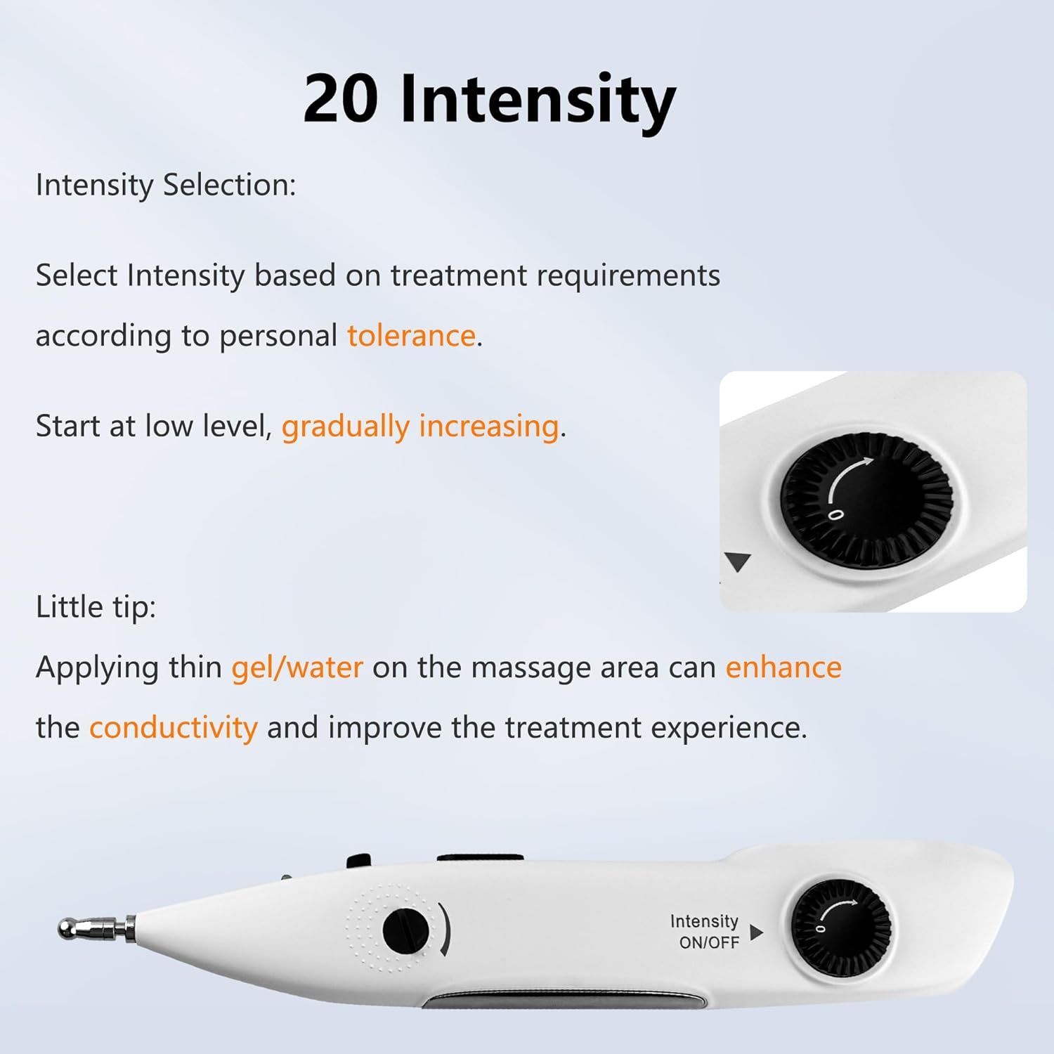 • 20 NIVELES DE INTENSIDAD Y SENSIBILIDAD:‌ El dispositivo incorpora ‌20 niveles de intensidad ajustables‌ y ‌configuración personalizable de sensibilidad‌ para adaptarse a las respuestas cutáneas individuales. Seleccione la intensidad requerida según necesidades terapéuticas y regule la sensibilidad conforme a su tolerancia personal. Para resultados óptimos, se recomienda iniciar en nivel 1 e incrementar gradualmente según requerimientos del tratamiento.