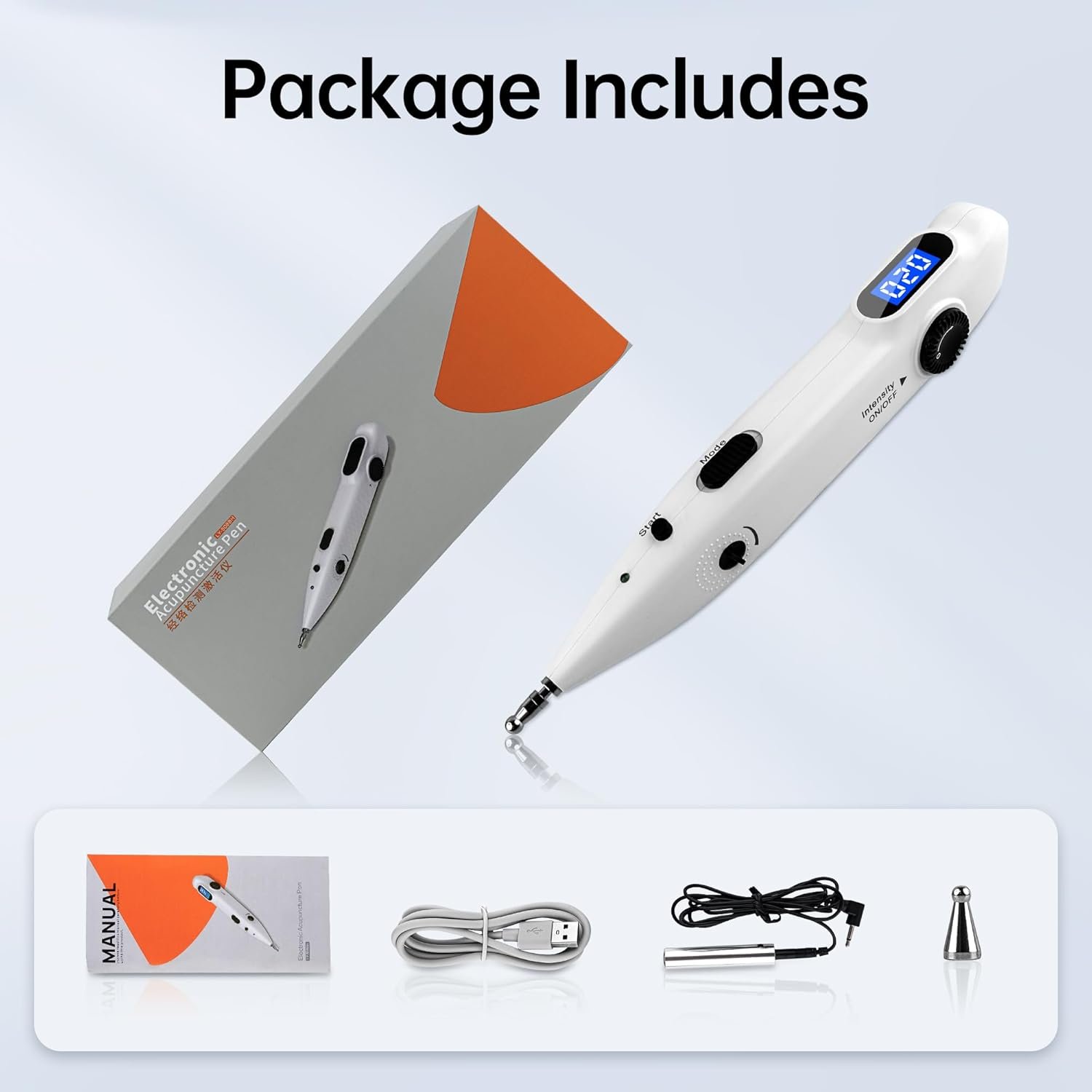 • CONTENIDO DEL PAQUETE:‌ pluma de acupuntura con cabeza de sonda grande, cabeza de sonda pequeña, varilla conductora, cable USB de carga y manual; Peso del producto: 0.23 lb (104 g), peso del paquete: 0.78 lb (354 g). Dimensiones: 10.3 × 4.2 × 1.8 pulgadas (26.2 × 10.7 × 4.6 cm).