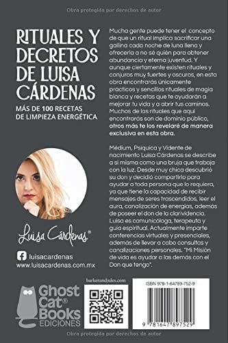 En este libro Luisa Cárdenas comparte con sus lectores los rituales más efectivos para la prosperidad y la abundancia, el amor, Año Nuevo, depuración de malas vibras en el hogar, limpias, etc. así como las mejores recetas para abrir tus caminos y quitar bloqueos energéticos.