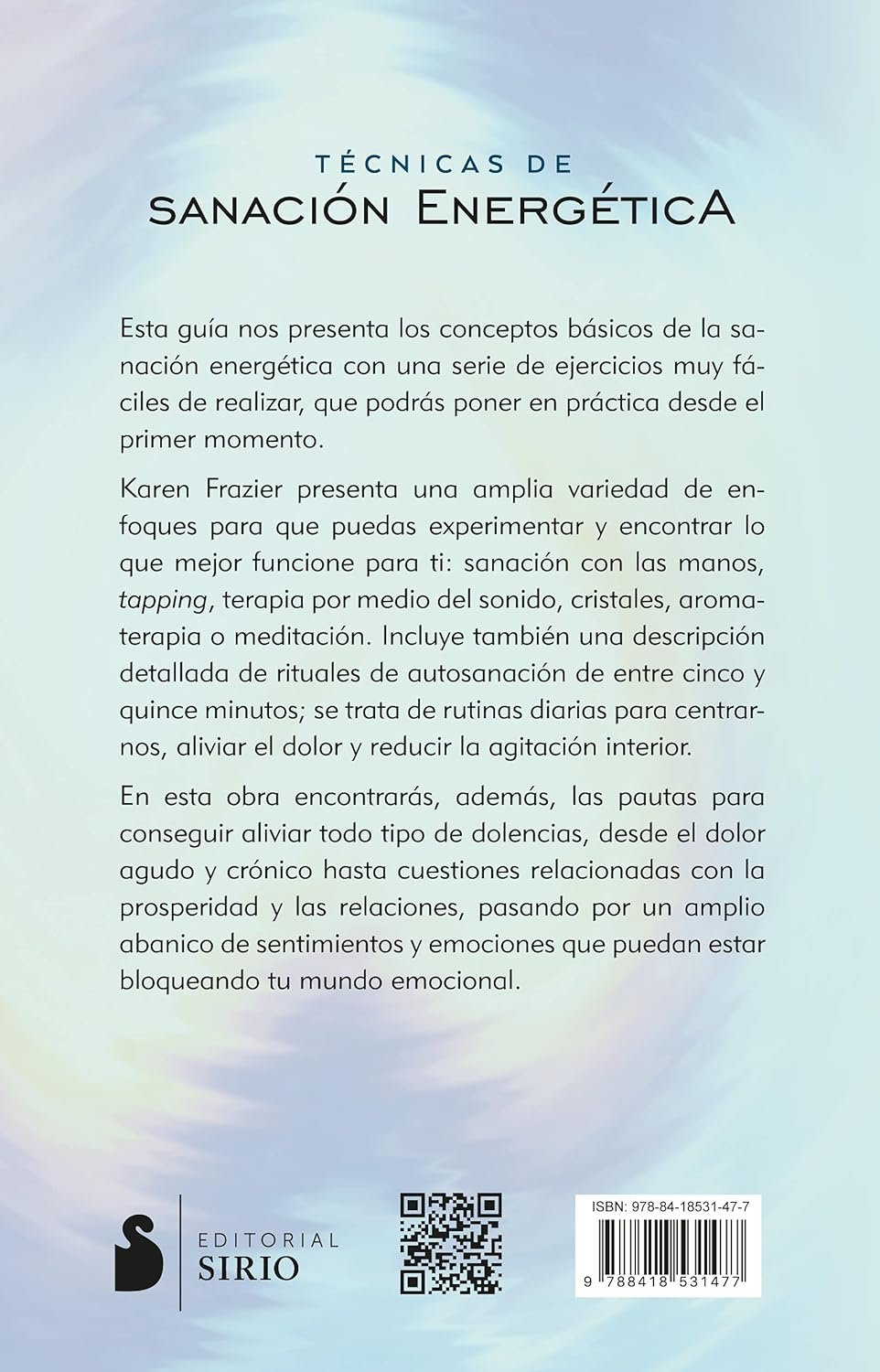 Esta guía nos presenta los conceptos básicos de la sanación energética con una serie de ejercicios muy fáciles de realizar, que podrás poner en práctica desde el primer momento. Karen Frazier presenta una amplia variedad de enfoques para que puedas experimentar y encontrar lo que mejor funcione para ti: sanación con las manos, tapping, terapia por medio del sonido, cristales, aromaterapia o meditación. Incluye también una descripción detallada de rituales de autosanación de entre 5 y 15 minutos, se trata de rutinas diarias para centrarnos, aliviar el dolor y reducir la agitación interior.