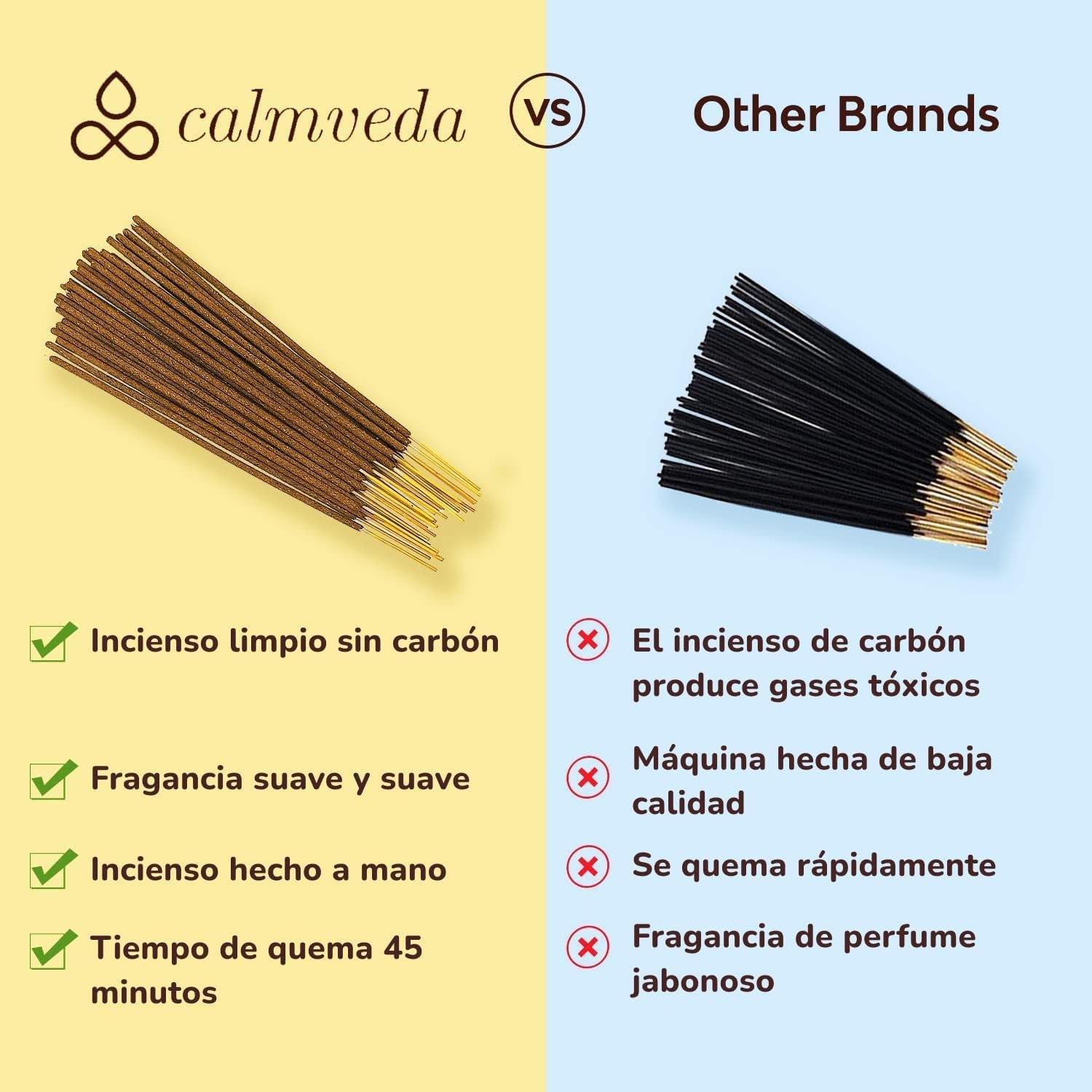 - ¿POR QUÉ USAR INCIENSO QUÍMICO TÓXICO? : Calmveda Incense utiliza únicamente fragancias que cumplen con la normativa IFRA para crear una experiencia verdaderamente beneficiosa y relajante para usted.