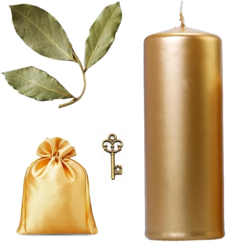 - Vela dorada ritualizada: símbolo universal de abundancia, riqueza y prosperidad.